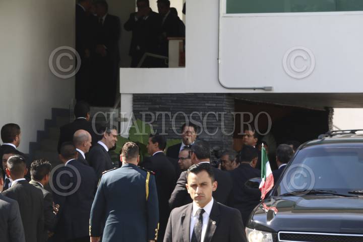 MÉXICO, D.F., 08ENERO2016.- Enrique Peña Nieto, Presidente de México, asistió a dar el pésame a amigos y familiares de Joaquín Gamboa Pascoe, líder de la CTM, minutos antes el presidente twitteó la captura de Joaquín Guzmán Loera "El Chapo" en los Mochis Sinaloa. FOTO: SAÚL LÓPEZ /CUARTOSCURO.COM