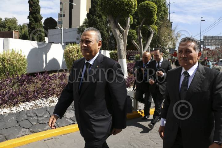 MÉXICO, D.F., 08ENERO2016.- César Camacho Quiroz, coordinador de los diputados del PRI, asistió a una funeraria en el sur de la ciudad a dar el pésame a amigos y familiares de Joaquín Gamboa Pascoe, líder de la CTM FOTO: SAÚL LÓPEZ /CUARTOSCURO.COM