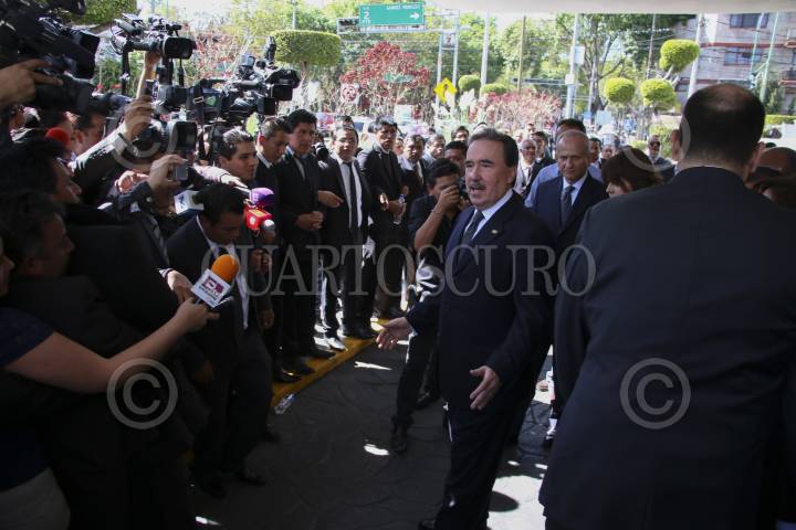 MÉXICO, D.F., 08ENERO2016.- Manlio Fabio Beltrones, presidente nacional del PRI, asistió a una funeraria en el sur de la ciudad a dar el pésame a amigos y familiares de Joaquín Gamboa Pascoe, líder de la CTM FOTO: SAÚL LÓPEZ /CUARTOSCURO.COM