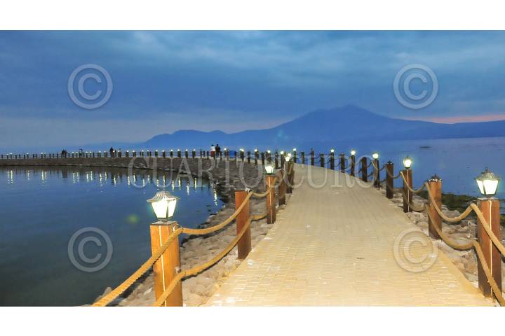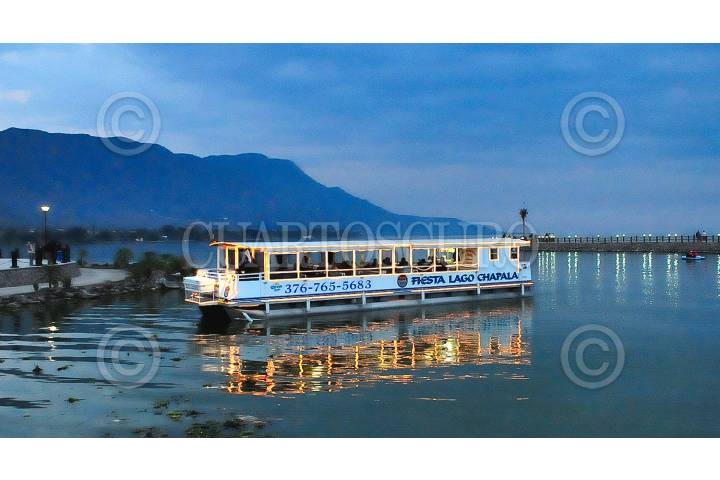 JOCOTEPEC, JALISCO, 12ENERO2009.- En ocasión de la fiesta del Santo patrono que celebra el Señor del Monte, la ciudad de Jocotepec luce esplendorosa estrenando luces nocturna en el recientemente construido malecón y barco para turistas en el lago Chapala. Todo contribuye a crear una atmosfera de ensueño. FOTO:MARIA DI PAOLA BLUM/CUARTOSCURO.COM