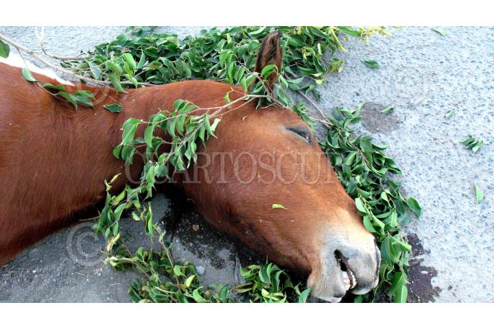 CHAPALA, JALISCO, 31ENERO2008.- Así quedó este caballo, que fué atropeyado en las primeras horas del dia, en la Carretera Poniente Chapala - Jocotepec en el cruce con Rio Lerma, justo en frente de una escuela. FOTO: MARIA DI PAOLA/CUARTOSCURO.COM