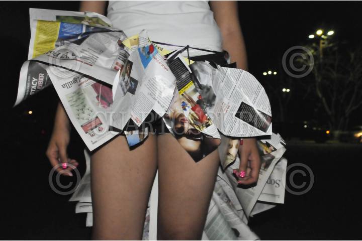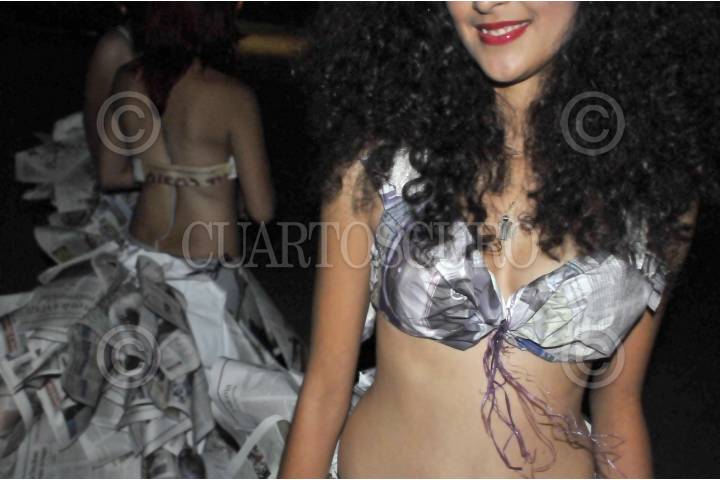JOCOTEPEC, JALISCO, 17ABRIL2010.- Esta noche la casa de la cultura de Jocotepec presentó con el apoyo del Instituto Municipal de la Juventud y el gobierno de Jocotepec una exposición de pintura y un desfile de moda creado por el artista Reyes Triguero, nativo de esta ciudad, quien recicló varios materiales para sus creaciones como el papel periódico, la bolsas de plástico, los cubiertos desechables. El tema de esta séptima edición fue el suicidio. FOTO: MARIA DI PAOLA BLUM/CUARTOSCURO.COM