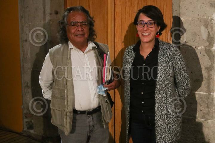 Pedro Valtierra, fotógrafo y director de la Agencia Cuartoscuro, y Johan Trujillo Argüelles, directora del Centro de la Imagen, durante la presentación de la Revista Cuartoscuro número 170