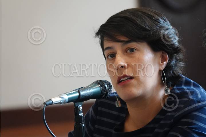Johan Trujillo Argüelles, directora del Centro de la Imagen, durante su participación en la conferencia de prensa del Centenario del natalicio del fotógrafo Héctor García