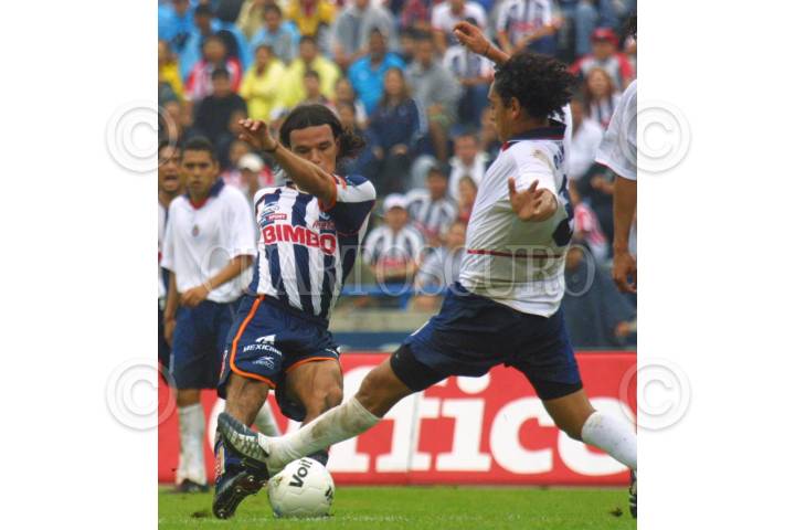 MONTERREY, N.L. AGOSTO2005.- Antonio Sancho(arriba) de Tigres se quita la marca de Johnny Garcia(abajo) de Chivas durante el partido de la jornada 4, realizado en el estadio Universitario de esta ciudad, con un marcador final de Tigres 1-1 Chivas. FOTO: Jorge López/CUARTOSCURO.COM