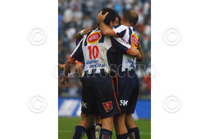 MONTERREY, N.L. 24.ABRIL.2004.- Los jugadores de Monterrey, festejan una de las 3 anotaciones de este dia con las que lograron empatar a Guadalajara FOTO: Jorge Lòpez/CUARTOSCURO.COM