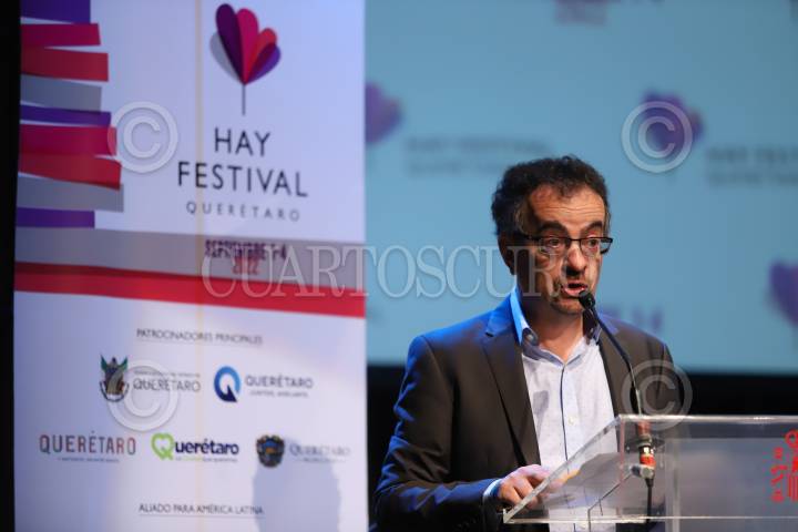 Conferencia de prensa del Hay Festival Querétaro, festival cultural de ideas para todos los públicos que celebra las artes y las ciencias a través de eventos inclusivos, accesibles y lúdicos. Al evento asistieron el embajador de España, Juan López-Dóriga Pérez; el embajador del Reino Unido en México, Jon Benjamin; la directora internacional del Hay Festival, Cristina Fuentes La Roche y el presidente municipal de Querétaro, Luis Bernardo Nava entre otros invitados, en el Centro Cultural España.