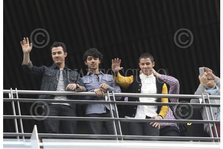 MÉXICO, D.F., 23ENERO2013.- La agrupación estadunidense Jonas Brothers arribó a la capital de nuestro país para promocionar su 'reality show': 'Married to Jonas' los jovenes respondieron las preguntas de los medios de comunicación y al termino salieron al balcon a saludar a los fans que se reunian a las afueras de un hotel de Polanco. FOTO: FRANCISCO RODRÍGUEZ /CUARTOSCURO.COM