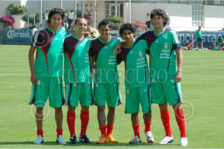 MÉXICO D.F., 18FEBRERO2008.- Hugo Ayala, Jorge Hernandez, Omar Esparza, Jonathan Orozco y Ángel Landin, jugadores de la selección mexicana de futbol al termino del entrenamiento en el Centro de Alto Rendimiento Pegaso. FOTO: RODOLFO ANGULO/CUARTOSCURO.COM