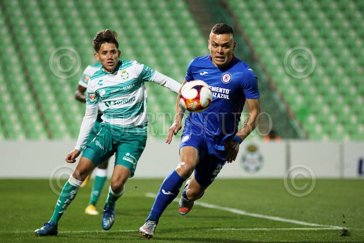 Jonathan Javier Rodríguez, delantero del Cruz Azul, disputa un balón durante el encuentro.
