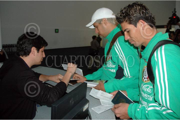 MÉXICO D.F., 04ENERO2008.- Adolfo Bautista y Jonny Magallón, seleccionados nacionales durante su registro en el aeropuerto internacional de la Ciudad de México en donde la Selección Mexicana de Futbol salio hacia Houston, Texas para el encuentro amistoso de este miércoles ante su similar de Estados Unidos. FOTO: RODOLFO ANGULO/CUARTOSCURO.COM