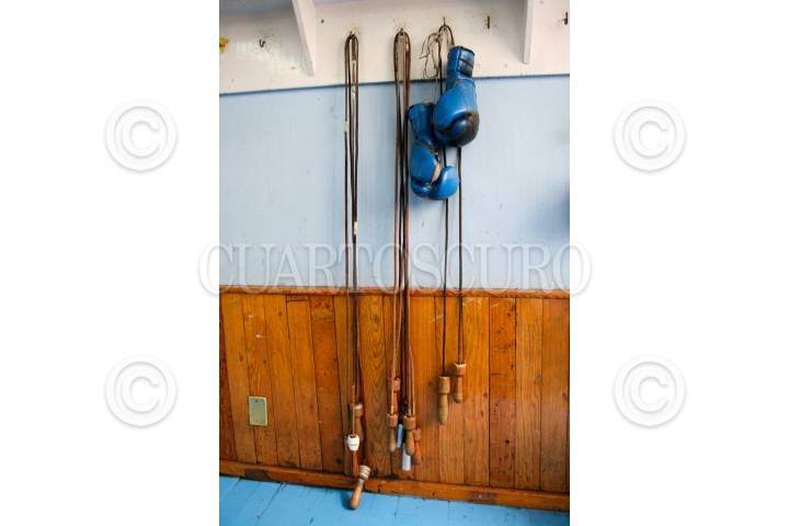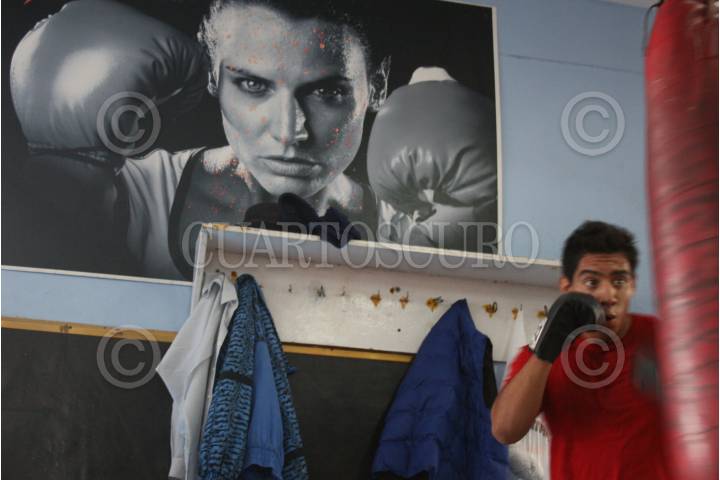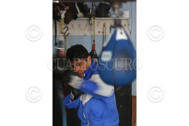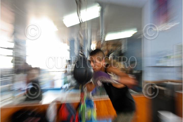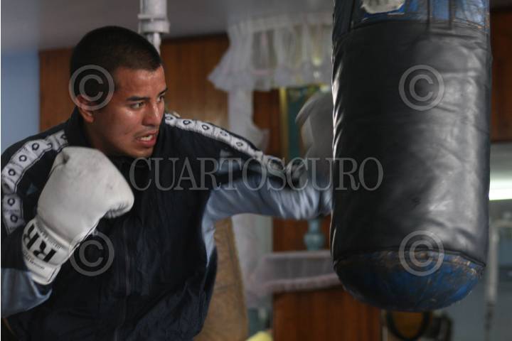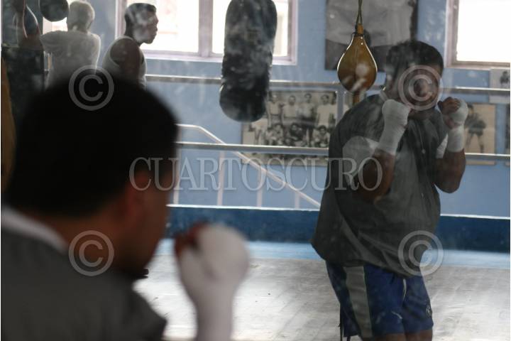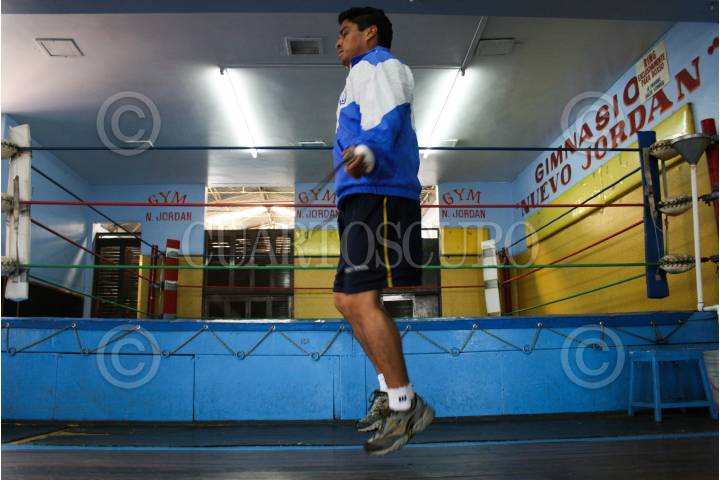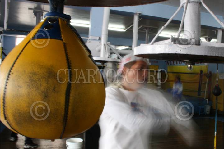 MÉXICO D.F., 27AGOSTO2008.- El eco de las peras y los costales retumba entre las paredes del Gimnasio "Nuevo Jordan", aficionados y profesionales se encuentran en las instalaciones de este lugar para sudar la gota gorda entre el ring y la cuerda de saltar, las paredes y bancas sostienes los guante ligas y maletas que ocupan los boxeadores, el mejor contrincante para entrenar es el reflejo del espejo que sirve para afinar los reflejos, solo estas son algunas de las cosas que se pueden encontrar en este deporte de contacto y mas aun en este legendario Gimnasio. FOTO: RICARDO CASTELAN/CUARTOSCURO.COM