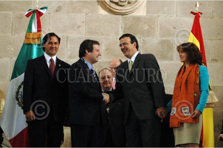 MÉXICO D.F., 12NOVIEMRBE2007.- El jefe de gobierno Marcelo Ebrard acompañado de su esposa Mariagna Prats y Jordi Hereu alcalde de la ciudad de Barcelona, España; a su llegada al Salón de los Cabildos. FOTO: RODOLFO ANGULO/CUARTOSCURO.COM