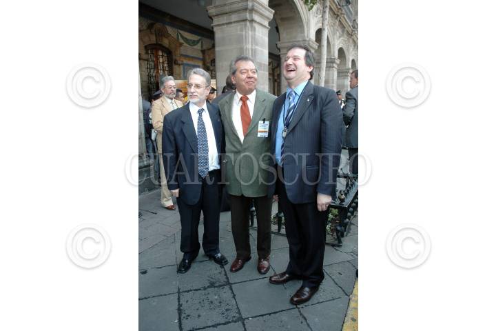 MÉXICO D.F., 12NOVIEMRBE2007.- Carmelo Angulo Barturén embajador de España en México, Porfirio Muñoz Ledo y Jordi Hereu alcalde de la ciudad de Barcelona, España a su salida del Salón de los Cabildos. FOTO: RODOLFO ANGULO/CUARTOSCURO.COM