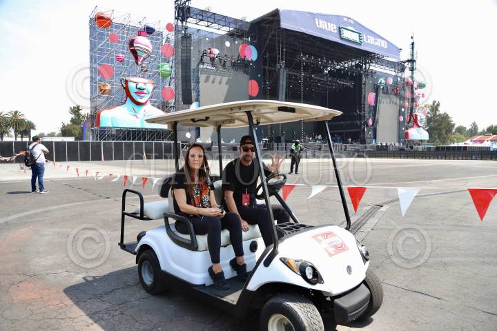 El director del festival, Jordi Puig y la directora de producción, Lourdes Skipsey durante el recorrido por las instalaciones donde se llevará a cabo el Vive Latino 2022.