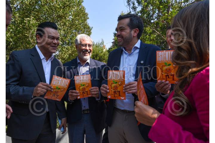 TOLUCA, ESTADO DE MÉDICO, 04JULIO2025.- Jorge Álvarez Máynez, dirigente nacional del Partido Movimiento Ciudadano, los diputados Juan Zepeda, Salomón Chertorivski, Jessica Ortega de la Cruz, durante los trabajos de la 7a Asamblea de la Coordinación Nacional de Diputadas y Diputados de Movimiento Ciudadano a las Legislaturas de los Estados; en donde aseguró que el partido sumará todos sus esfuerzos con miras al 2027 para que el Estado de México se pinte de naranja, como Veracruz y Durango, y se reiteró el respaldo al diputado local Juan Zepeda para lograr esto. FOTO: CRISANTA ESPINOSA AGUILAR /CUARTOSCURO.COM