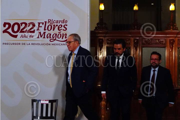 Aspectos de Andrés Manuel López Obrador, Jorge Alcocer, y Zoé Robledo, durante la conferencia mañanera desde Palacio Nacional.