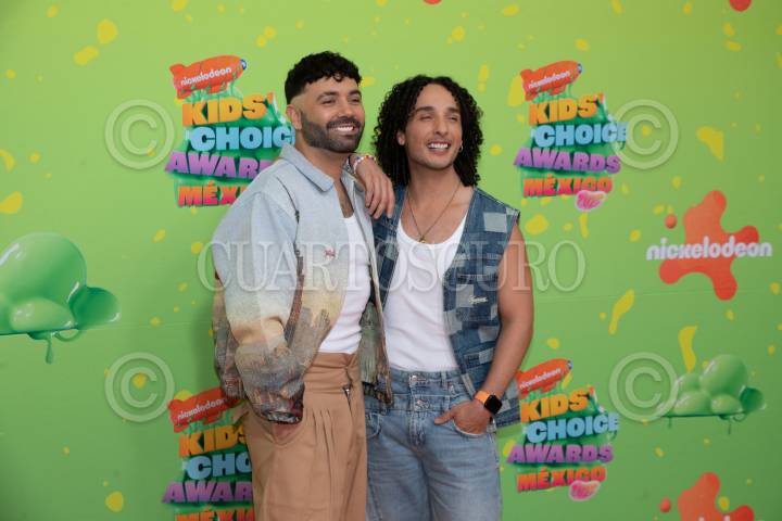 Diego Cardenas y Jorge Anzaldo a su paso por la alfombra naranja de Los Kids Choice Awards México 2023, la celebración más pegajosa de Nickelodeon Latinoamérica, celebrada en el Auditorio Nacional.