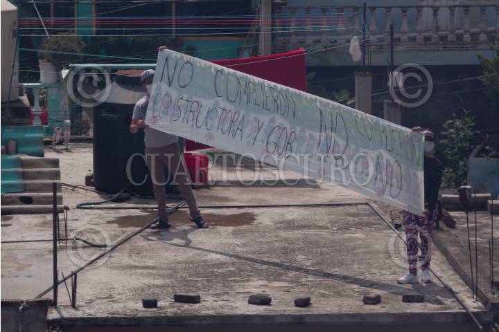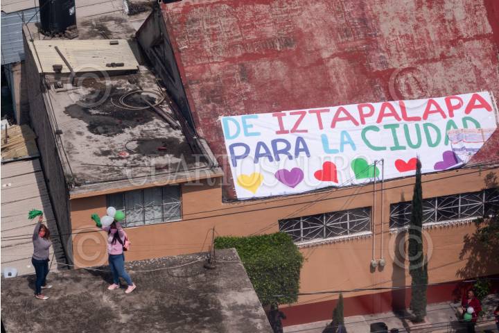 Vecinos se manifestaron desde su azote durante la inaguración de la Línea 2 del Cablebús en Iztapalapa.