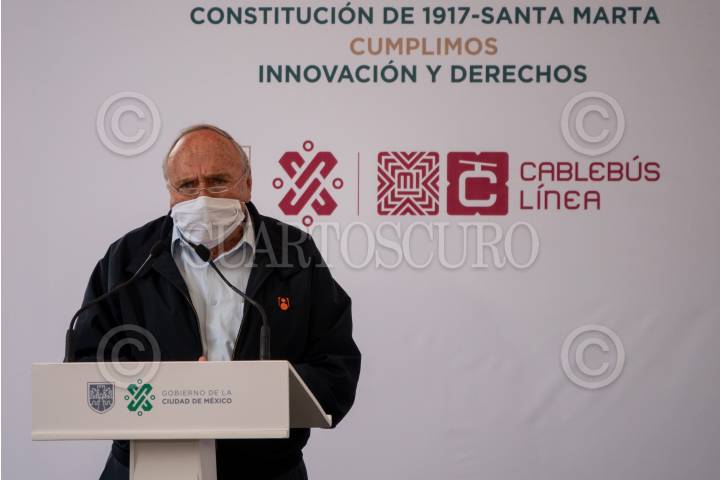 José Abed Rouanett durante la inaguración de la Línea 2 del Cablebús en Iztapalapa.