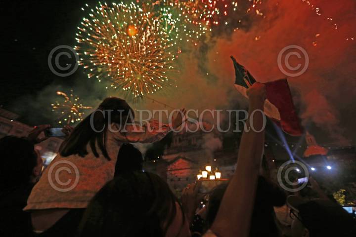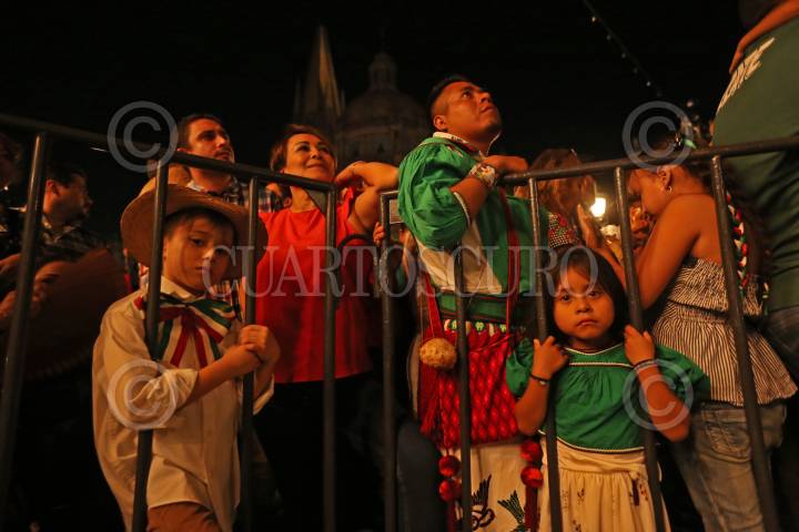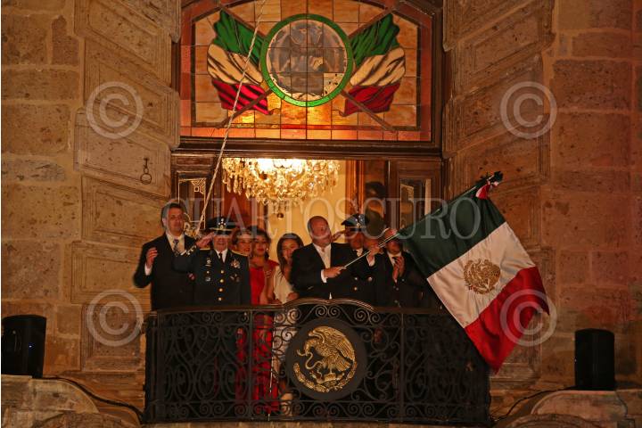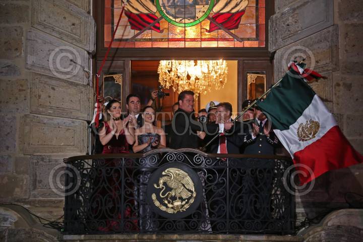 GUADALAJARA, JALISCO, 15SEPTIEMBRE2019.- Enrique Alfaro Ramírez, Gobernador del estado, dio el tradicional grito de independencia desde el balcón de Palacio de Gobierno ante cientos de personas que asistieron a la Plaza de Armas, en donde después se llevó a cabo un espectáculo de pirotecnia en torno a la plaza y la Catedral Metropolitana. FOTO: FERNANDO CARRANZA GARCIA / CUARTOSCURO.COM