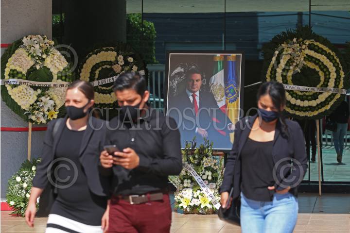 Algunas personas acudieron a las instalaciones del Comité Directivo Estatal del PRI para dejar coronas, veladoras y algunas hacer oraciones por el asesinato del ex Gobernador Jorge Aristóteles Sandoval Díaz.