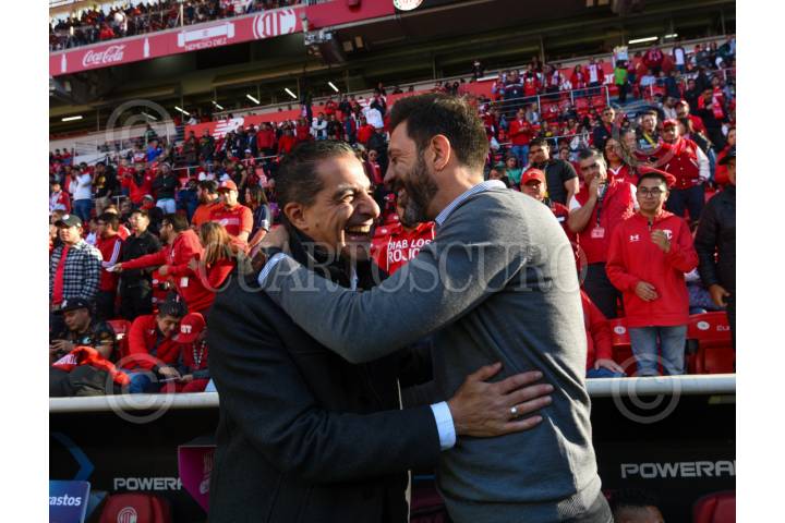 TOLUCA, ESTADO DE MÉXICO, 03FEBRERO2024.- Renato Alves D.T. de los Diablos de Toluca y Jorge Bava D.T. de escuadra del León en el partido correspondiente a la jornada 5 del Torneo Clausura 2024 de la Liga MX, en el estadio Nemesio Diez, teniendo un marcador final 4-1. FOTO: CRISANTA ESPINOSA AGUILAR /CUARTOSCURO.COM