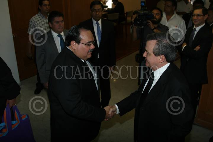 MÉXICO, D.F. 17ABRIL2013.- El Secretario de Desarollo Agrario, Territorial y Urbano, Jorge Carlos Ramos Marin, dió el pesame a Javier Ramírez Campuzano, hijo del Arquitecto, Pedro Ramírez Vázquez, quien falleciera ayer exactamente a la edad de 94 años. Sus restos serán cremados y se preve un homenaje en el Museo de Antropología en días próximos. FOTO: FRANCISCO RODRÍGUEZ /CUARTOSCURO.COM