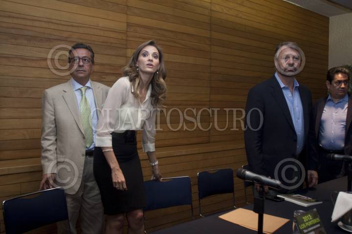 MÉXICO, D.F., 02MAYO2012.- El exsecretario de Gobernación, Fernando Gómez Mont, la escritora Ana Paula Ordorica y el excanciller en el gobierno de Vicente Fox, Jorge Castañeda, participaron en la mesa presentación del libro "2012: Los Punteros. Dos Conversaciones." de la editorial Random House Mondadori que se llevó a cabo la noche de hoy en un conocido hotel en calles de Polanco. FOTO: FRANCISCO RODRÍGUEZ /CUARTOSCURO.COM