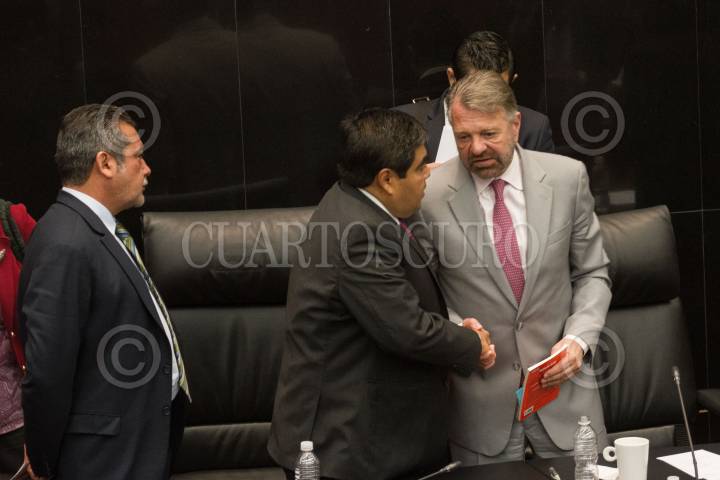 CIUDAD DE MÉXICO, 08MARZO2016.- Miguel Barbosa Huerta, coordinador del PRD en el Senado de la República, y Jorge Castañeda, durante la presentación del libro "Sólo así. Por una agencia ciudadama independiente". FOTO: ISAAC ESQUIVEL /CUARTOSCURO.COM