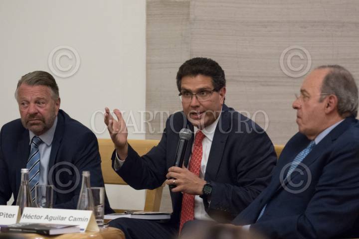 El Político Jorge Castañeda, la Politóloga Ivabelle Arroyo, el Periodista Álvaro Vargas Llosa, el Critico Literario Christopher Domínguez Michael y Moderando la charla “Pensar el Periodismo” el Historiador y Ensayista Enrique Krauze