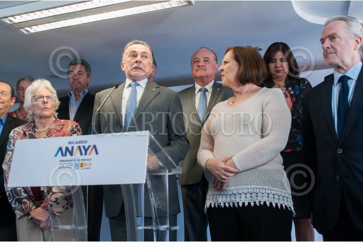 CIUDAD DE DE MÉXICO, 06JUNIO2018.- Rubén Aguilar Valenzuela, participó en una conferencia de prensa con un grupo de panistas en la cual hicieron un llamado a más militantes del partido blanquizaul para cierrar filas en torno al candidato presidencial de Por México al Frente, Ricardo Anaya. FOTO: DIEGO SIMÓN SÁNCHEZ /CUARTOSCURO.COM