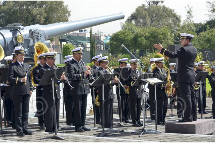 MÉXICO, DF, 02DICIEMBRE2013.- Integrantes de la banda de guerra de Marina durante la “Ceremonia Solemne al Personal de la Categoría Almirante para su retiro”, entre 12 de ellos los almirantes Jorge Humberto Pastor Gómez, Armando García Rodríguez, Joaquín Cetino Angulo y Miguel Huerta Barragán. “Ustedes son ejemplo de un alto sentido de responsabilidad, dedicación, profesionalismo y madurez pues han asumido desde siempre un compromiso con el mar, México y nuestra alma máter”, mencionó el secretario al término de la ceremonia que finalizó con el himno nacional entonado por la banda de guerra de la infantería de marina. FOTO: MARÍA JOSÉ MARTÍNEZ / CUARTOSCURO.COM