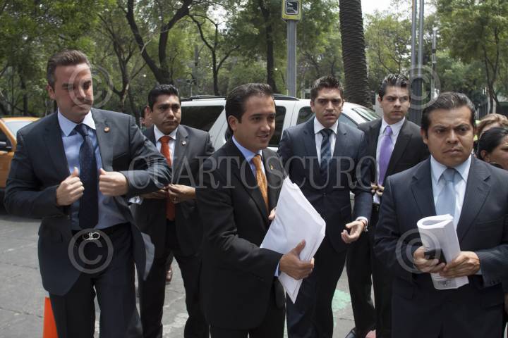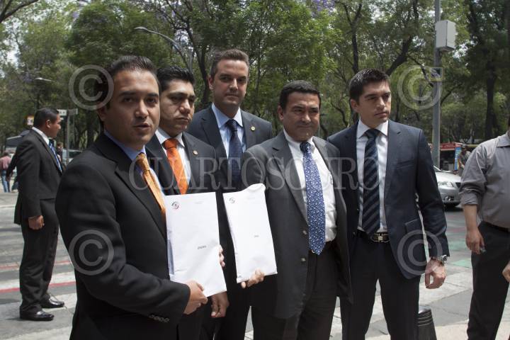 MÉXICO, D.F., 13MARZO2013.- Fernando Yunes Márquez, senador del PAN por Veracruz, Jorge Luis Preciado, senador del PAN, Jorge Luis Lavalle, senador del PAN, Rafael Acosta Croda, diputado federal del PAN por Veracruz, y Luis Fernando Salazar, senador del PAN, acudieron a la PGR para interponer una denuncia penal en contra del gobernador de Veracruz Javier Duarte de Ochoa por desviós de recursos por la cantidad de 5000 mil millones de pesos de la cuenta pública. FOTO: MOISÉS PABLO /CUARTOSCURO.COM