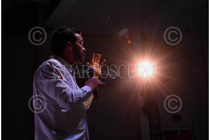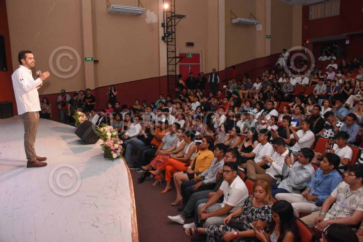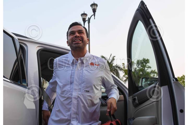 CAMPECHE, CAMPECHE, 22MARZO2024.- Jorge Álvarez Máynez, candidato a la presidencia por el partido Movimiento Ciudadano , sostuvo un encuentro de diálogo con universitarios de la asociación nacional de estudiantes de ciencia política y administración pública en el teatro Juan de la Cabada de la ciudad capital. FOTO: MICHAEL BALAM/CUARTOSCURO.COM