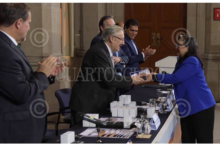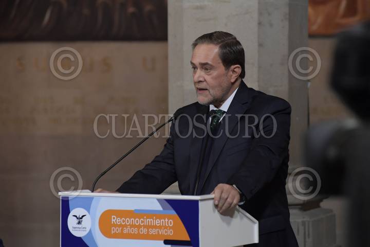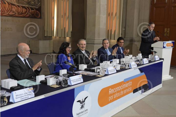 CIUDAD DE MÉXICO, 07NOVIEMBRE2023.- La ministra presidenta de la Suprema Corte de Justicia de la Nación (La Corte), Norma Lucía Piña Hernández, fue reconocida por 35 años de trayectoria jurisdiccional, durante la Ceremonia de Entrega de Medallas y Reconocimientos por años de servicio en el Poder Judicial de la Federación 2023, donde también recibieron el reconocimiento otras 64 personas trabajadoras del PJF de diversas áreas. En su discurso de reconocimiento a la labor de todas y todos los trabajadores que recibieron la medalla, el ministro de La Corte, Jorge Mario Pardo Rebolledo, destacó que la Ministra Presidenta es una funcionaria judicial destacada que recibe un justo reconocimiento de trabajo y compromiso por la “entrega, capacidad, profesionalismo, honestidad y excelencia a quien, pienso yo que, por esos atributos, el destino la ha colocado en el sitial más delicado y trascendente en una etapa inédita para nuestra institución”. FOTO: SCJN/CUARTOSCURO.COM