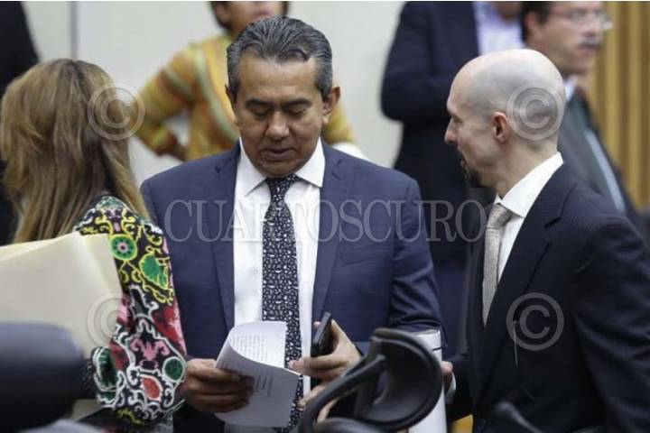 CIUDAD DE MÉXICO, 02ABRIL2025.- Jorge Montaño Ventura y Arturo Castillo Loza, consejeros electorales del INE, conversaron durante la Sesión Extraordinaria del Consejo Electoral del Instituto Nacional Electoral. FOTO: GRACIELA LÓPEZ/CUARTOSCURO.COM