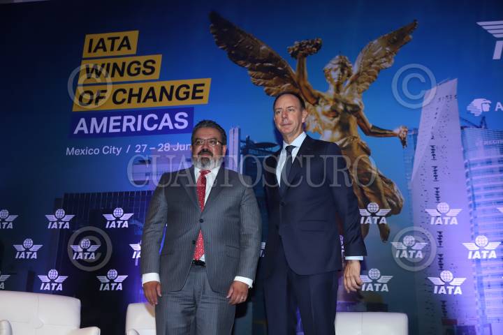 Inauguración por parte de Jorge Nuño, titular de la SICT y Peter Cerdá, vicepresidente de la Asociación de Transporte Aéreo Internacional (IATA, por sus siglas en inglés), del foro Wings of Change Americas 2023.