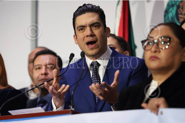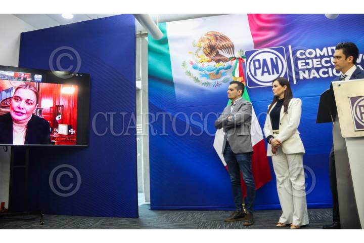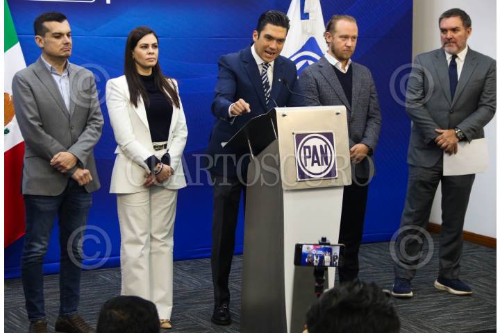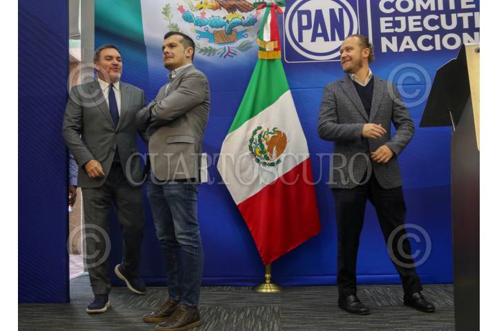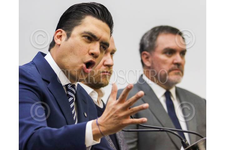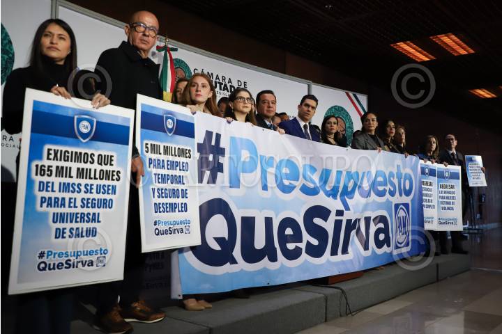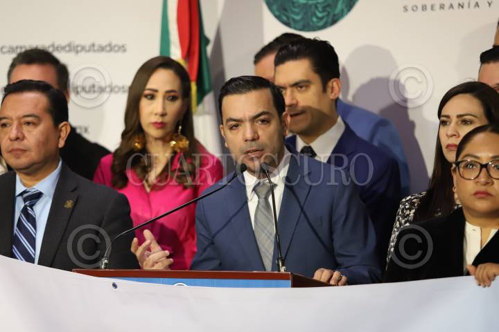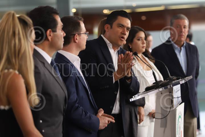CIUDAD DE MÉXICO, 05DICIEMBRE2024.- El grupo parlamentario del PAN, acompañados por el dirigente nacional del partido, Jorge Romero, anunciaron que, durante la semana de discusión del presupuesto, realizarán actividades para que la población mexicana de enteré de lo que se encuentra discusión en la Cámara de Diputados. FOTO: DANIEL AUGUSTO/ CUARTOSCURO.COM