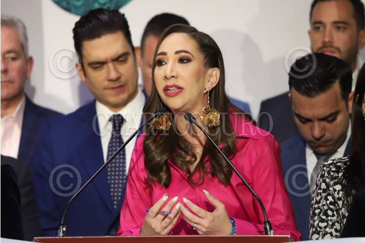 CIUDAD DE MÉXICO, 05DICIEMBRE2024.- Noemí Luna, coordinadora del grupo parlamentario del PAN, durante la conferencia. FOTO: DANIEL AUGUSTO/ CUARTOSCURO.COM