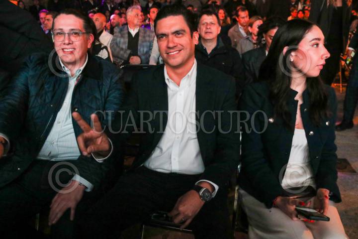CIUDAD DE MÉXICO. 09JULIO2025.- Luis Mendoza alcalde de Benito Juárez y el dirigente del PAN, Jorge Romero Herrera; en la presentación del Atlas de la Cuauhtémoc, de la alcaldesa Alessandra Rojo de la Vega. FOTO: VICTORIA VALTIERRA/CUARTOSCURO.COM