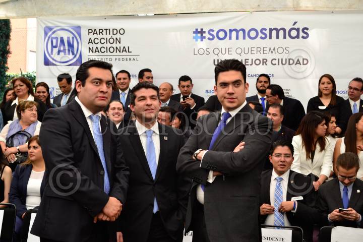 MÉXICO, D.F., 19MARZO2015.- Maurcio Tabe, dirigente del PANDF, encabezó el registro de los candidatos blaquiazules a delegados y diputados locales en el Instituto Electoral del DF. Lo acompaño el delegado con licencia Jorge Romero Herrera, quien esta en la lista de los diputados plurinominales. FOTO: DIEGO SIMÓN SÁNCHEZ /CUARTOSCURO.COM
