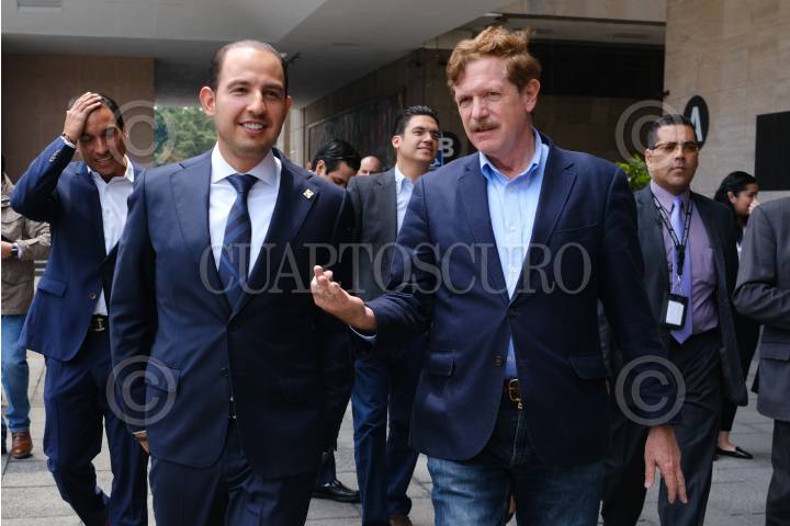 CIUDAD DE MÉXICO, 26AGOSTO2019.- José Luis Romero Hicks, coordinador del PAN; Marko Cortés, dirigente nacional del PAN, Jorge Romero Herrera, vicecoordinador del PAN, y diputados del partido, ofrecieron una conferencia de prensa al termino de la reunión plenaria de los diputados federales, la cual se realizó en el salón Carlos Castillo Peraza, en la Cámara de Diputados. FOTO: GRACIELA LÓPEZ /CUARTOSCURO.COM