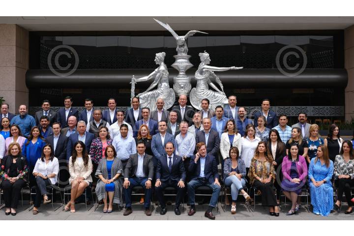 CIUDAD DE MÉXICO, 26AGOSTO2019.- José Luis Romero Hicks, coordinador del PAN; Marko Cortés, dirigente nacional del PAN, Jorge Romero Herrera, vicecoordinador del PAN, y diputados del partido, se tomaron una fotografía oficial en el patio central de la Cámara de Diputados. FOTO: GRACIELA LÓPEZ /CUARTOSCURO.COM