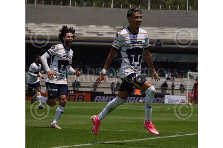 CIUDAD DE MÉXICO, 07JULIO2024.- Jorge Ruvalcaba, extremo del equipo de Pumas, festejó el cuarto gol anotado a su favor contra el León durante el partido correspondiente a la Jornada 1 del Apertura 2024 en el Estadio Olímpico Universitario. FOTO: GRACIELA LÓPEZ /CUARTOSCURO.COM