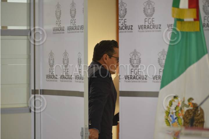 XALAPA, VERACRUZ, 18FEBRERO2019.- El fiscal Jorge Winckler señaló que la investigación sobre la privación de la libertad del elemento de la Policía Federal la lleva a cabo la Federación además aseguró que el video que circula en redes sociales no corresponde al evento, sino que es en otra parte de la República, por otra parte al ser cuestionado sobre la denuncia de juicio político que enfrentaría en el Congreso local se limitó a decir que no formaba parte de los cuestionamientos propios de la conferencia de prensa. FOTO: ALBERTO ROA /CUARTOSCURO.COM