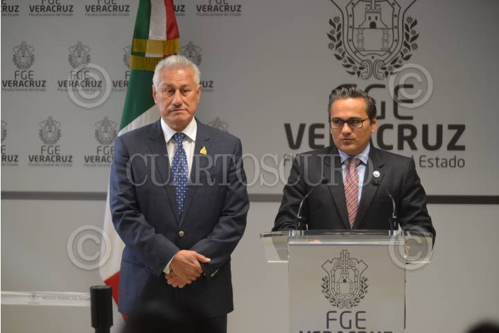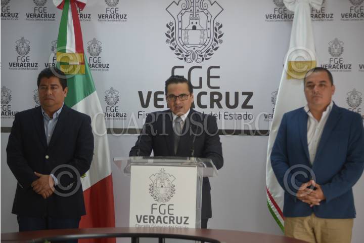 XALAPA, VERACRUZ, 15ENERO2018.- En conferencia de prensa el fiscal Jorge Winckler acompañado del secretario de la SSP, Jaime Téllez Marié, dieron a conocer el rescate de MGEG con identidad resguardada en la zona conurbada Veracruz-Boca del Río, quien era víctima de secuestro, además de mencionar que ya identificaron a las personas que fueron descuartizadas, las cuales fueron halladas al interior de una camioneta el sábado por la noche. FOTO: ALBERTO ROA /CUARTOSCURO.COM