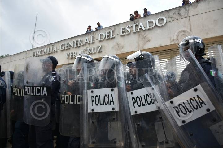 XALAPA, VERACRUZ, 04SEPTIEMBRE2019.- Policía antimotines cercaron el día de ayer las inmediaciones de la Fiscalía General del Estado luego del conflicto que se desató por la remoción del ex fiscal de Veracruz, Jorge Winckler. FOTO: YERANIA ROLÓN /CUARTOSCURO.COM