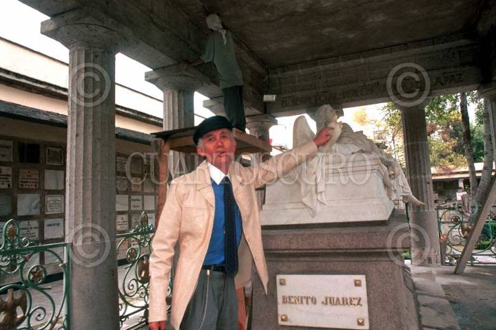 Jorge Gómez Jácome, director de McCartney Internacional, es quien coordina el proyecto de restauración de la tumba de Benito Juárez, en el Panteón de San Fernando. A un día del 130 aniversario luctuoso del "Benémerito de las Américas", no concluyen esos trabajos de restauración, por la falta de apoyo económico del gobierno. FOTO: Oswaldo Ramírez/CUARTOSCURO.COM