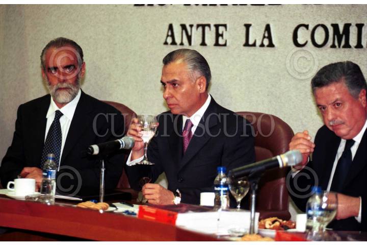 Diego Fenández de Cevallos, presidente de la junta Coordinación Política del Senado, Rafael Macedo de la Concha, procurador General de la Republica y Jorge Cermeño, senador por el Partido acción Nacional, durante la comparecencia del funcionario ante la comisión de justicia. FOTO: Susana Navarrete/CUARTOSCURO.COM